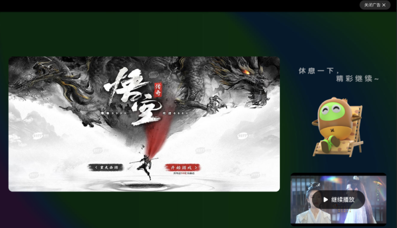 看到自己喜欢的片段,想暂停欣赏一下,画面却又被缩小到右下角,弹出来的还是广告,随着每一次暂停都伴随着大屏广告,终于,你心态崩了。