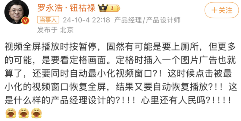 观众们苦暂停广告久矣,其中也包括充钱的VIP。几天前罗永浩吐槽了这一问题,网友们一下子炸开了锅,终于有人说了!