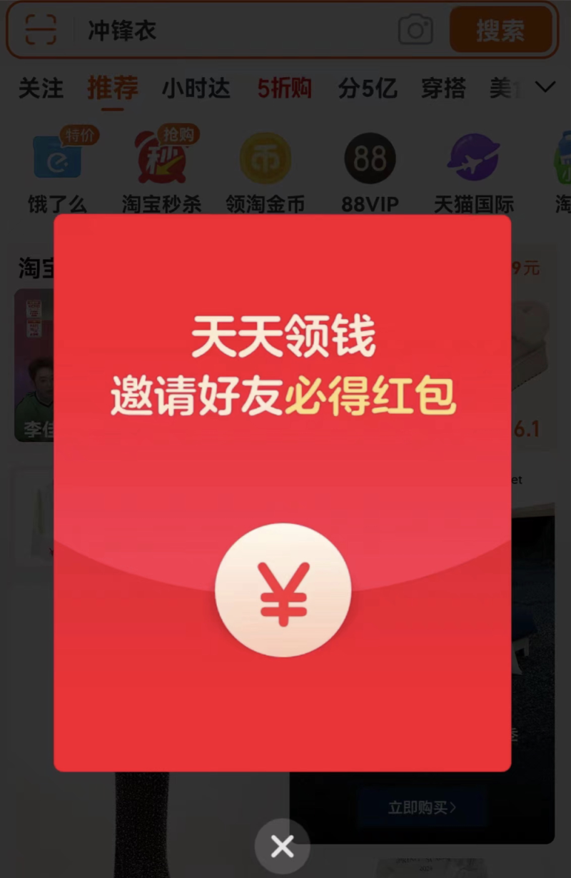 除看视频外,其他互联网平台也有很多让人头疼的广告操作,最常见的是摇一摇跳转页面,这个“天才”的发明广泛存在于电商平台,打开之后,摇摇手机就会出现例如抢红包的广告,点进去后,就又会以现金的形式诱导用户邀请好友,从而达到引流的效果。